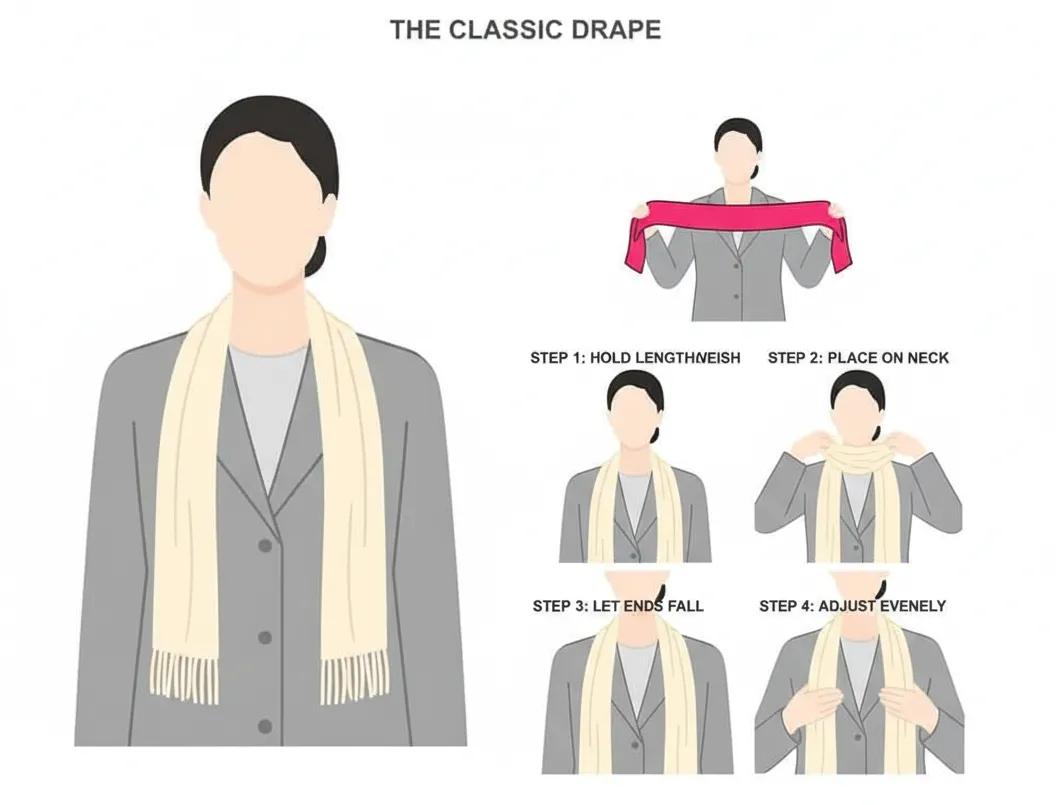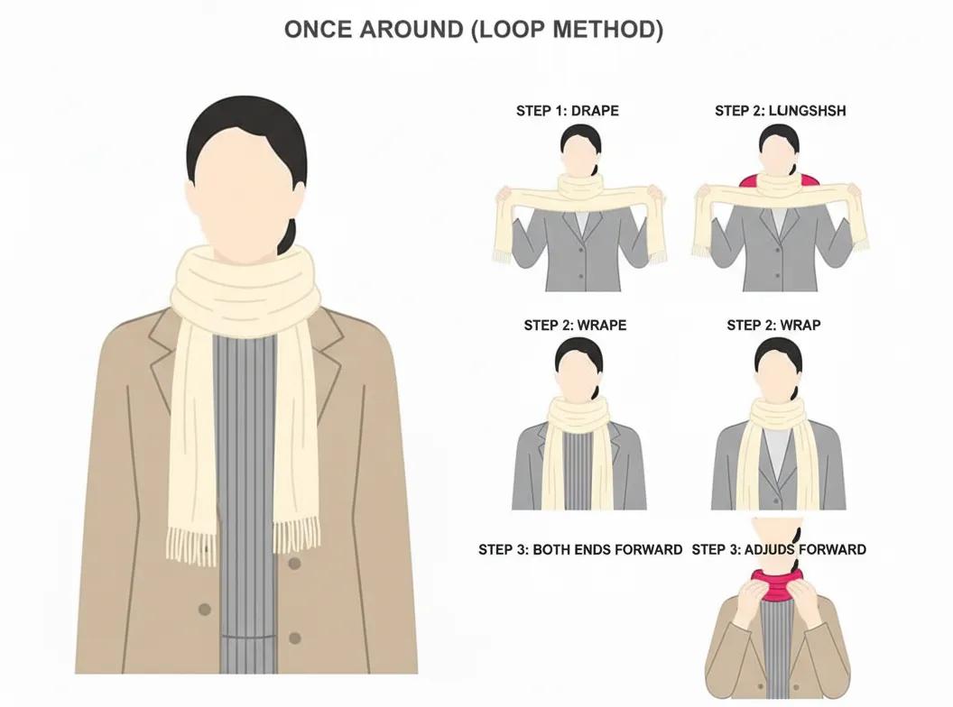 The once-around is perfect when you need a bit more coverage than the classic drape but don't want anything too complicated. It's that sweet spot between casual and intentional. This style sits comfortably around your neck, creating a soft loop that feels cozy without looking bulky.