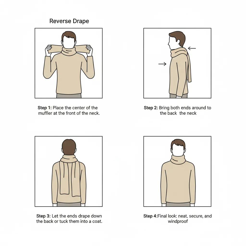 The reverse drape keeps your muffler secure while protecting your neck from cold gusts. It's functional fashion at its finest.